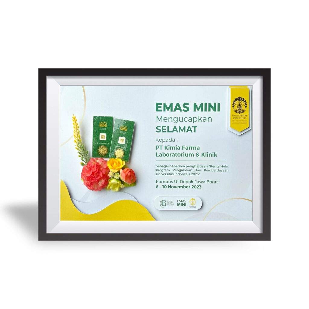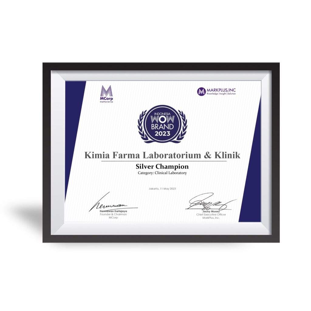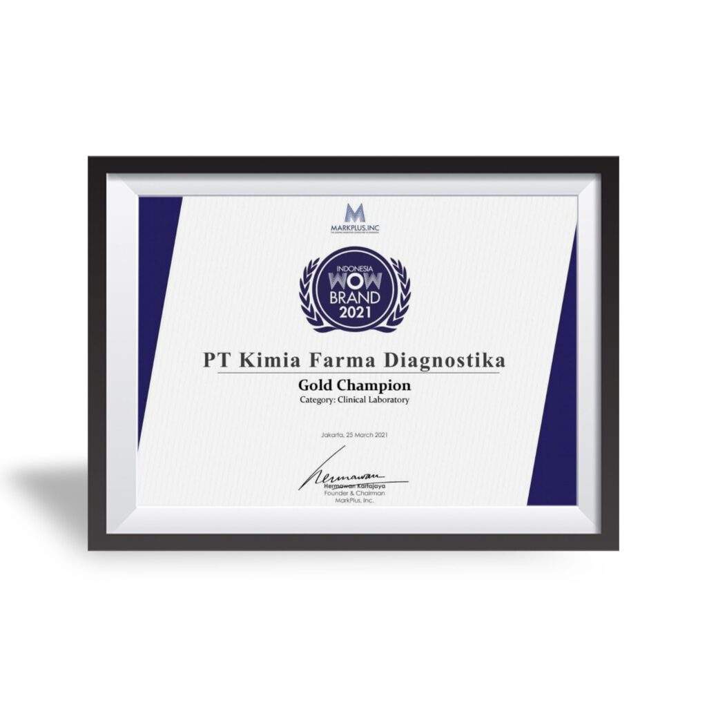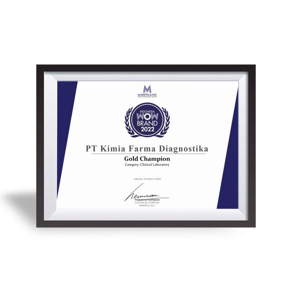 Penghargaan Muri Edukasi dan Skrining Hepatitis Secara Serentak Tahun : 2022 Muri Jaringan Klinik Vaksinasi yang Melayani Tahun : 2022 Muri Pengecekan Kadar Gula Darah secara Seri Tahun : 2023 Wow Brand Gold Champion “Category Clinical Laboratory” Tahun : 2021 Wow Brand Gold Champion “Category Clinical Laboratory” Tahun : 2022 Muri Edukasi dan Skrining Hepatitis Secara Serentak Tahun : 2023 “Penta Helix” Program Pengabdian da Pemberdaya Tahun : 2023 Prestasi dan Komitmen Menggerakkan Program Pem Tahun : 2023